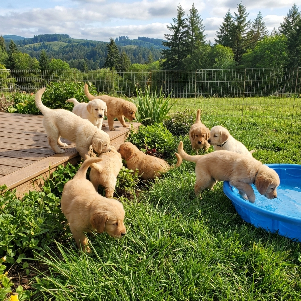 Here in Oregon, we've developed what I believe is the gold standard for raising home raised Golden Retriever puppies. Our approach isn't just about meeting basic needs, it's about creating an environment where puppies naturally develop the skills they'll need for their future roles.